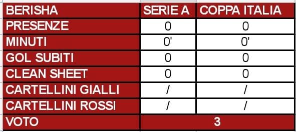 —Berisha paga un atteggiamento che, stando alle parole di Juric, è stato poco professionale in quanto c'è stata una totale mancanza di accettazione delle scelte tecniche. Il suo voto è un 3 perché si è tirato indietro e così facendo non si è mai reso utile alla causa granata. Così commentava la sua situazione il suo agente nel dicembre dell'anno scorso: "La situazione a Torino ci ha un po' preso di sorpresa: ha chiuso l'ultima stagione giocando e facendo bene. Di conseguenza dopo si sarebbe aspettato un po' più di spazio e di possibilità per competere per la maglia da titolare. Così non è stato e quindi stiamo lavorando per trovargli una opportunità". È evidente che questa opportunità non sia poi arrivata e hanno accusato il colpo sia lui che il Torino, che si è trovato a gestire un calciatore scontento da mettere fuori rosa per metà stagione. Juric ha parlato così durante l'anno di Berisha: "Non accetta facilmente il ruolo di secondo portiere e vedo negli allenamenti che non è al top. Per questo preferisco che si alleni a parte, perché chi ha questo atteggiamento è dannoso per il gruppo". Si cercherà senz'altro una sistemazione per lui nella sessione estiva del mercato dopo questo 2022/23 con zero minuti giocati (il portiere ha ancora un anno di contratto col Torino). Ma a lasciare qualche perplessità a questo punto è il Berisha professionista, e si è trattato sicuramente di qualcosa di inatteso. Si può non condividere una scelta tecnica, ma occorre comunque mettersi a disposizione del gruppo e della società che paga puntualmente l'ingaggio.