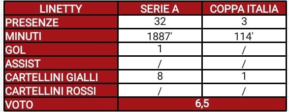 Partito sicuramente non come un titolare fisso, Linetty ha saputo ritagliarsi spazi importanti, guadagnandosi la fiducia del mister con prestazioni di sacrificio e volontà. 35 presenze tra Serie A e Coppa Italia, condite da un gol a Roma nella gara di andata coi giallorossi, sono il traguardo raggiunto dal centrocampista polacco, capace di abbinare alla grinta anche inserimenti di qualità. Con l'arrivo di Ilic e il ritorno di Ricci dopo i fastidi al polpaccio, si è dovuto accontentare del ruolo di "riserva di lusso", ma la stima di Juric nei suoi confronti è rimasta immutata e più volte ribadita nel corso della stagione appena conclusa.