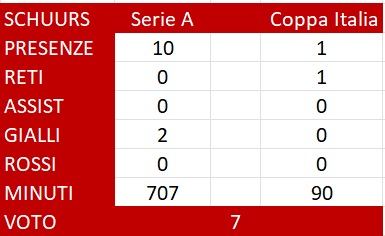 In generale, a questa prima parte di stagione di Schuurs non si può non dare una valutazione più che positiva. L'olandese si è calato bene nella parte ed in poche partite è stato in grado di convincere Juric, dimostrandosi un giocatore chiave per la difesa granata, un vero e proprio pilastro. Il suo voto nella pagella di metà stagione è 7.