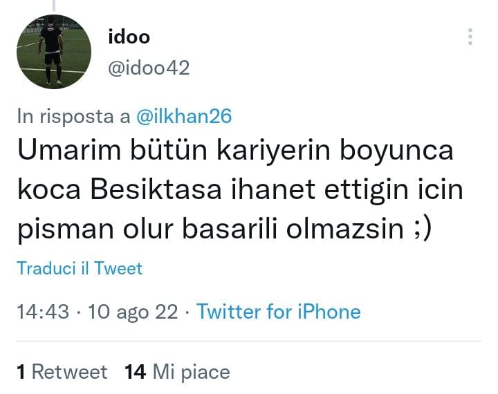 "Spero che ti pentirai di aver tradito il grande Besiktas per tutta la tua carriera e che non avrai successo"