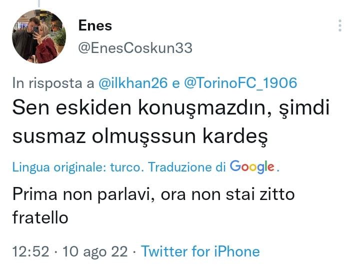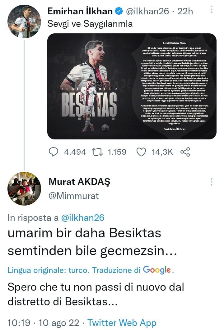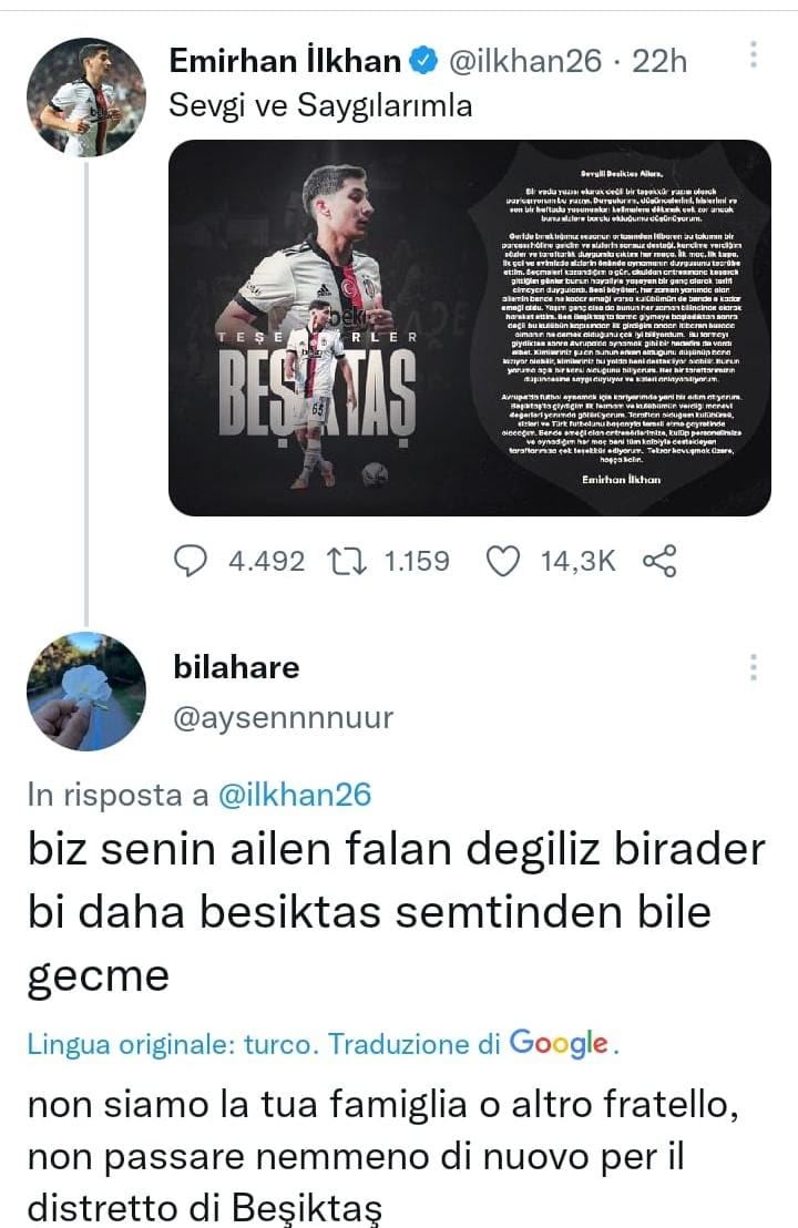 Alcune delle reazioni dei tifosi del Besiktas ai post di addio del nuovo centrocampista granata Emirhan İlkhan