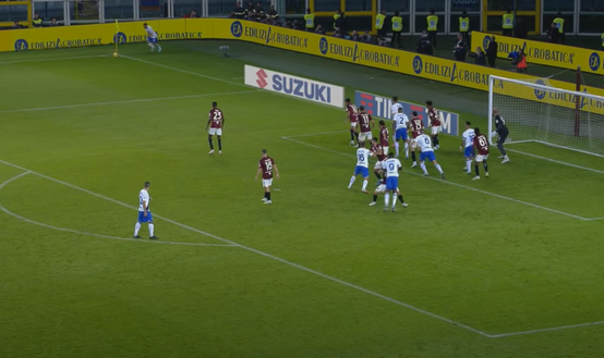 L'Inter poco dopo raddoppia con Lautaro da situazione di calcio d'angolo, un tallone d'Achille per i granata nelle ultime partite.