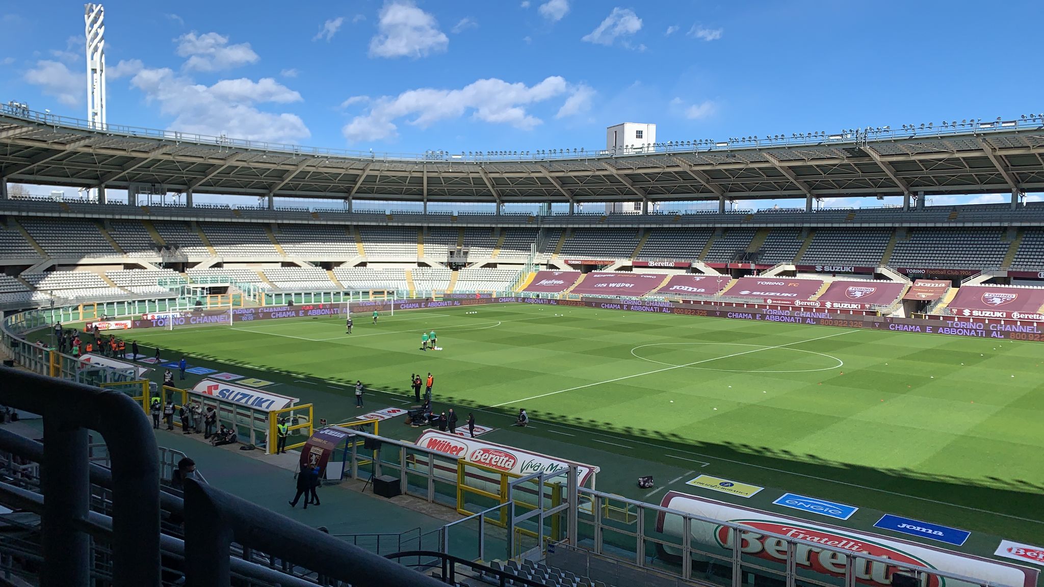 14.06 Gli addetti dello stadio stanno sistemando le ultime cose, a momenti inizierà il riscaldamento