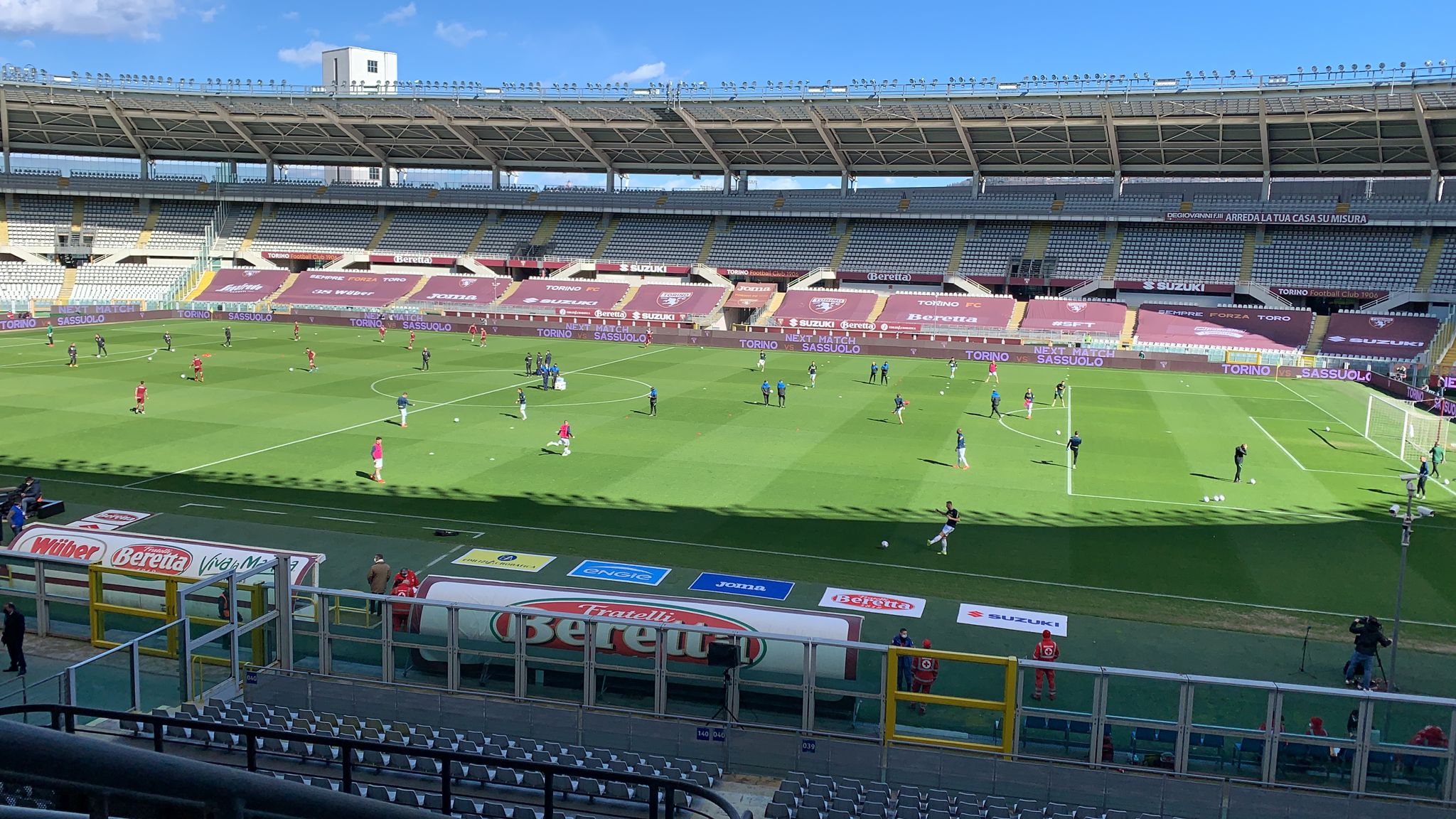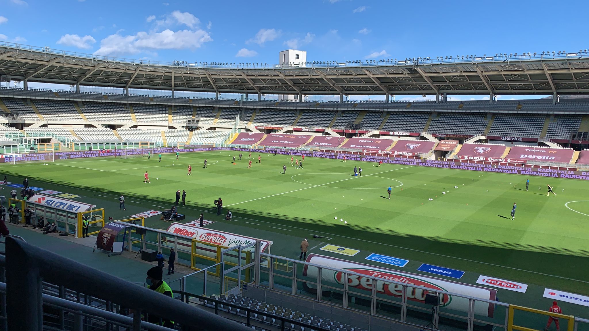 14.25 Il Toro in campo per il riscaldamento pre-partita