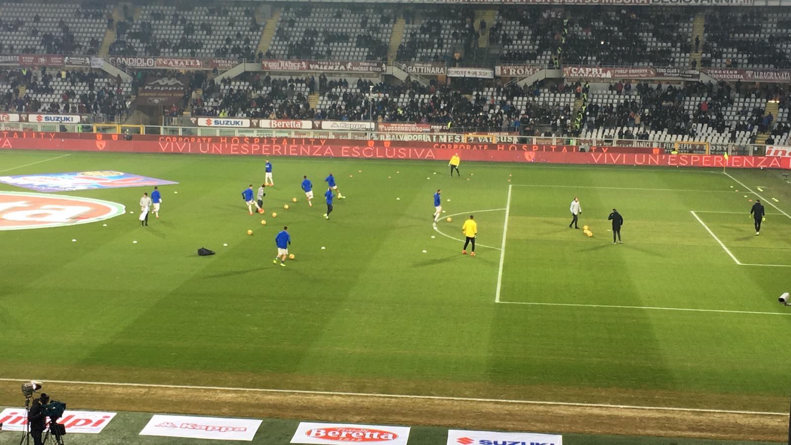 17.11 Scendono in campo i portieri granata per i consueti esercizi pre-partita