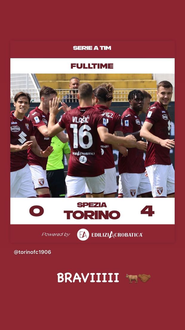Torino, la gioia dei giocatori sui social: “Vittoria meritata, ora l’ultima”