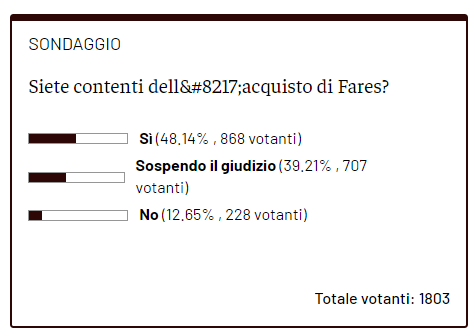 Siete contenti dell'acquisto di Fares? Ecco il risultato del sondaggio, e le opinioni dei votanti