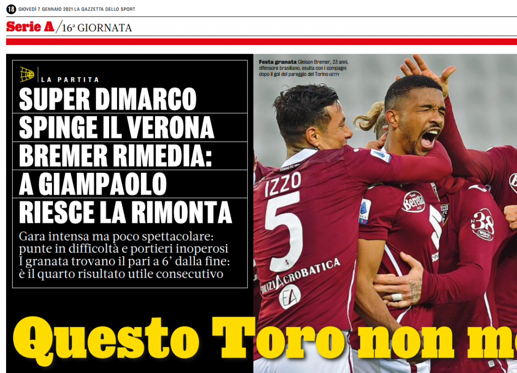Video – Rassegna Stampa TN del 7/01/2021: “Questo Toro non molla”