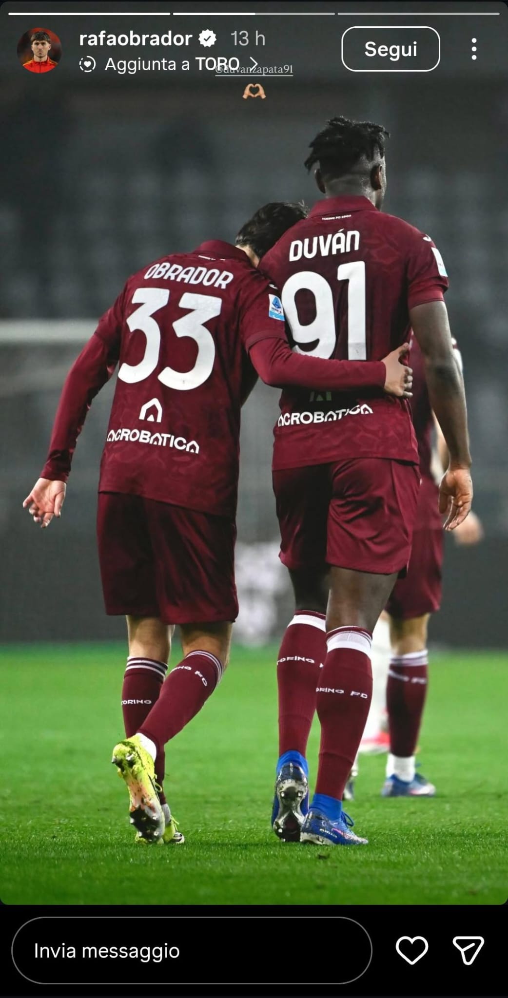 Il terzino sinistro spagnolo nella vittoria di ieri si è reso protagonista di un'ottima gara, e ha messo la sua firma nel secondo goal granata con un assist perfetto per Zapata, con il quale ha postato una storia che li ritrae fianco a fianco.
