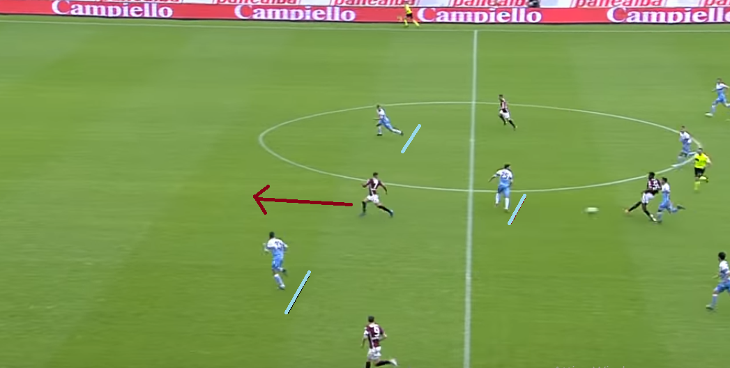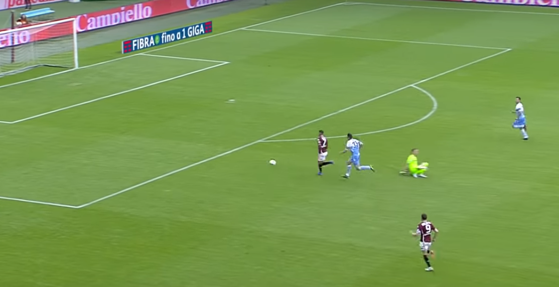 Due minuti dopo il Torino trova il raddoppio. Tutto parte da una grande giocata di Meité, che supera Cataldi con un tunnel. Il francese percorre una ventina di metri di campo con un break che coglie di sorpresa una Lazio decisamente squilibrata.