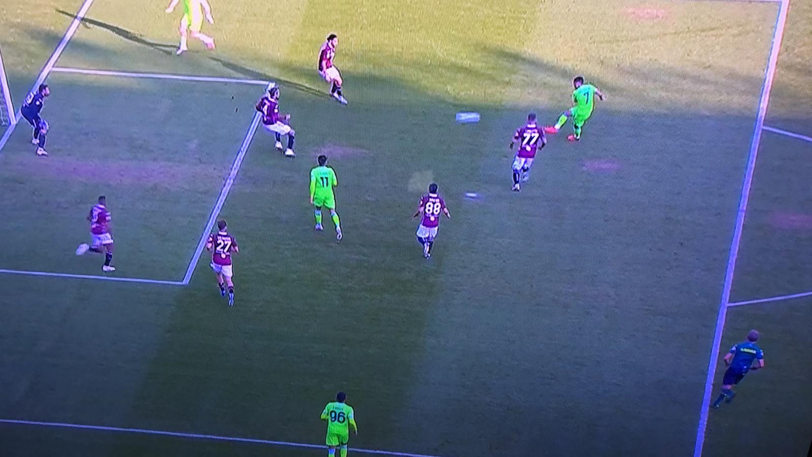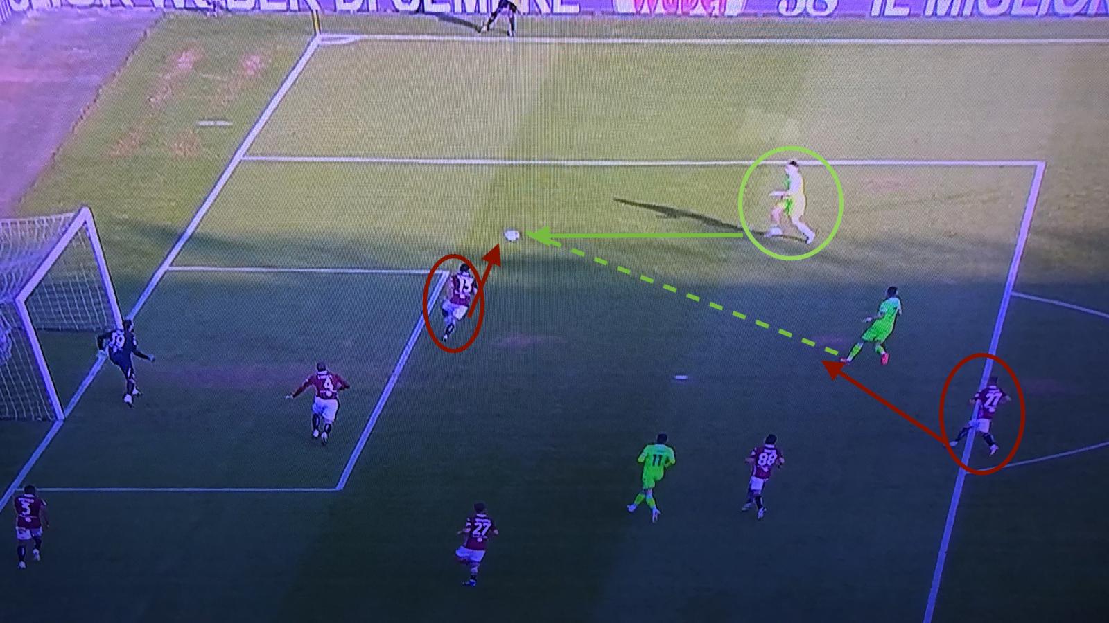 Muriqi così riceve sul lato dell'area di rigore granata e riesce ad andare al cross su Patric che si trovava sul lato opposto. Rodriguez è molto lontano dall'esterno laziale e prova ad arrivare in tempo per contrastarlo. Intanto a centro area è liberissimo Pereira, perché Linetty è fuori posizione e va sul giocatore con troppa lentezza.