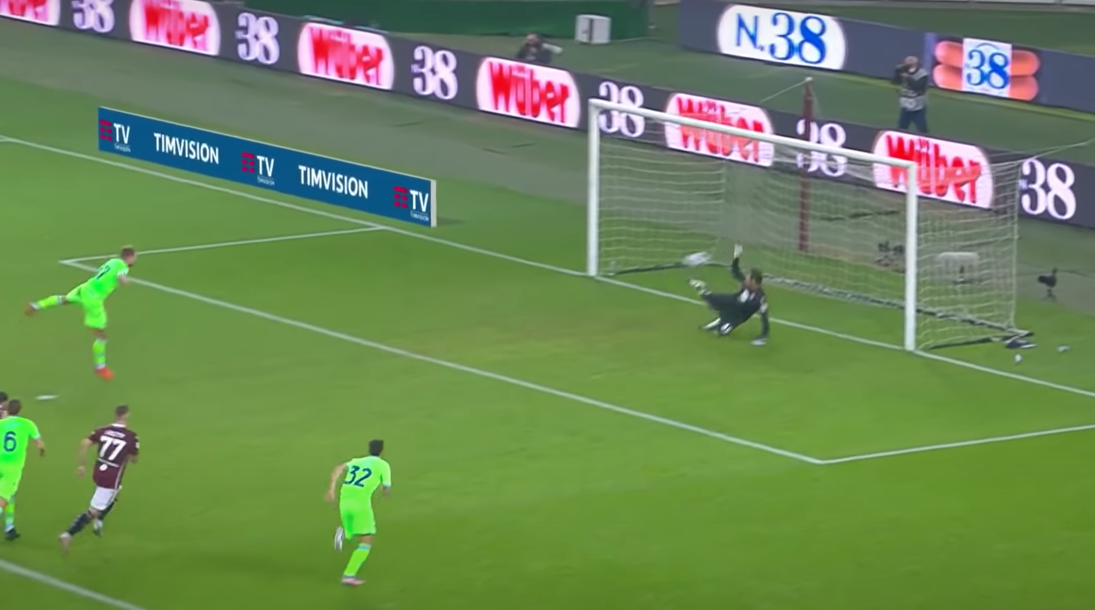Dal dischetto Immobile è freddo e spiazza Sirigu: palla a sinistra e portiere a destra. Partita di nuovo in parità.