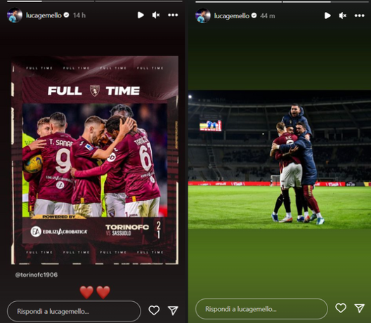 Dopo essere tornato titolare in Coppa Italia, Luca Gemello ha nuovamente lasciato il posto tra i pali a Vanja Milinkovic-Savic per la sfida con il Sassuolo. Pur restando in panchina, Gemello si è dimostrato solidale e ha gioito per i compagni sia in campo durante il match che poi sui social. Nelle Instagram Stories il portiere granata ha condiviso il post sulla vittoria del profilo ufficiale del Torino accompagnandolo da due cuori a corredo; poi ha voluto pubblicare l'abbraccio dato a Sanabria dopo il gol insieme a Ilic e Radonjic.