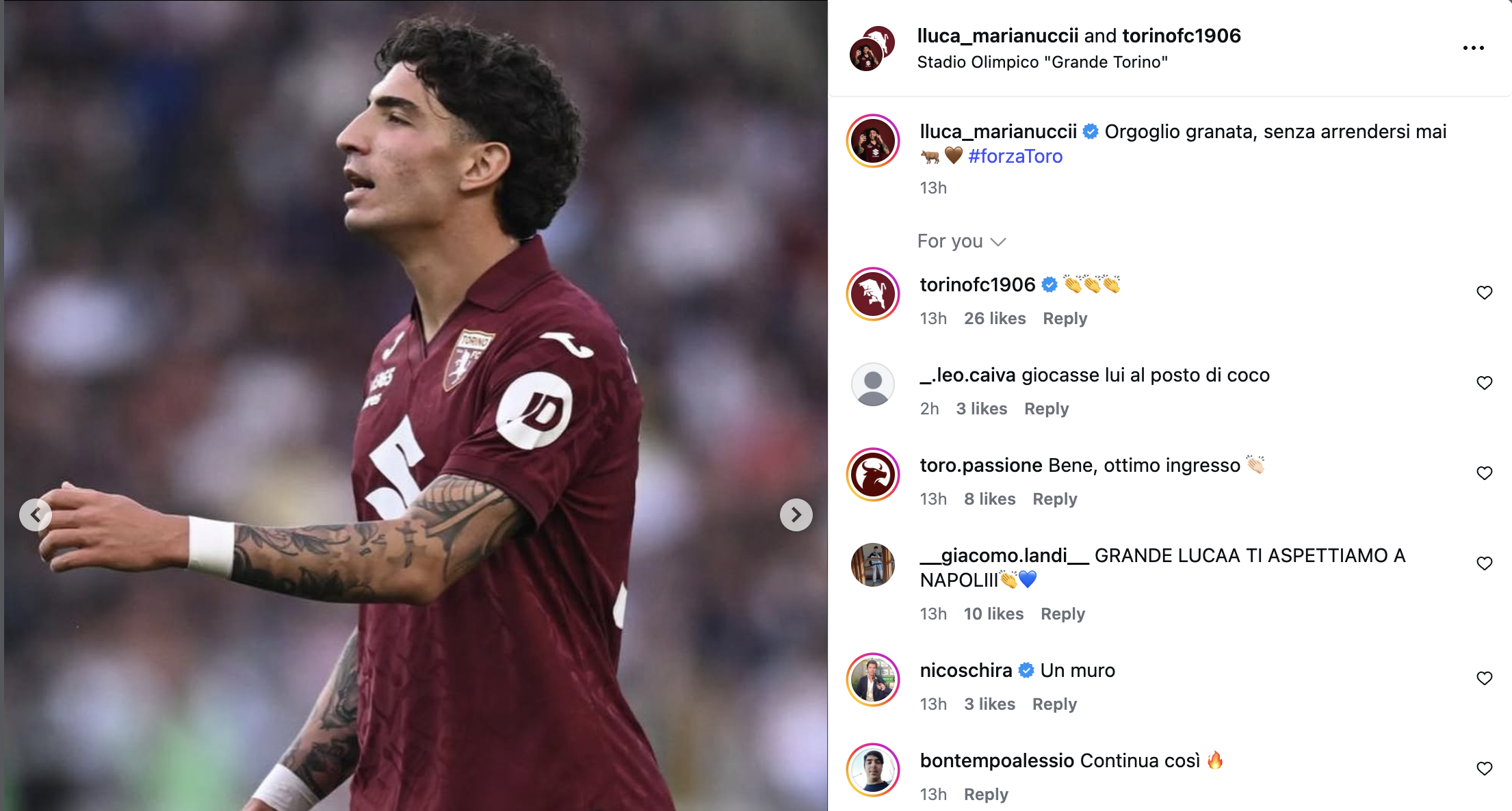 Arrivato in prestito secco a gennaio, anche Marianucci ieri è stato autore di una buona prova, giocata dal 53' in poi. "Orgoglio granata, senza arrendersi mai" sentenzia il difensore, ed effettivamente riassume in pieno la reazione della squadra dopo essere andata sotto di due gol.