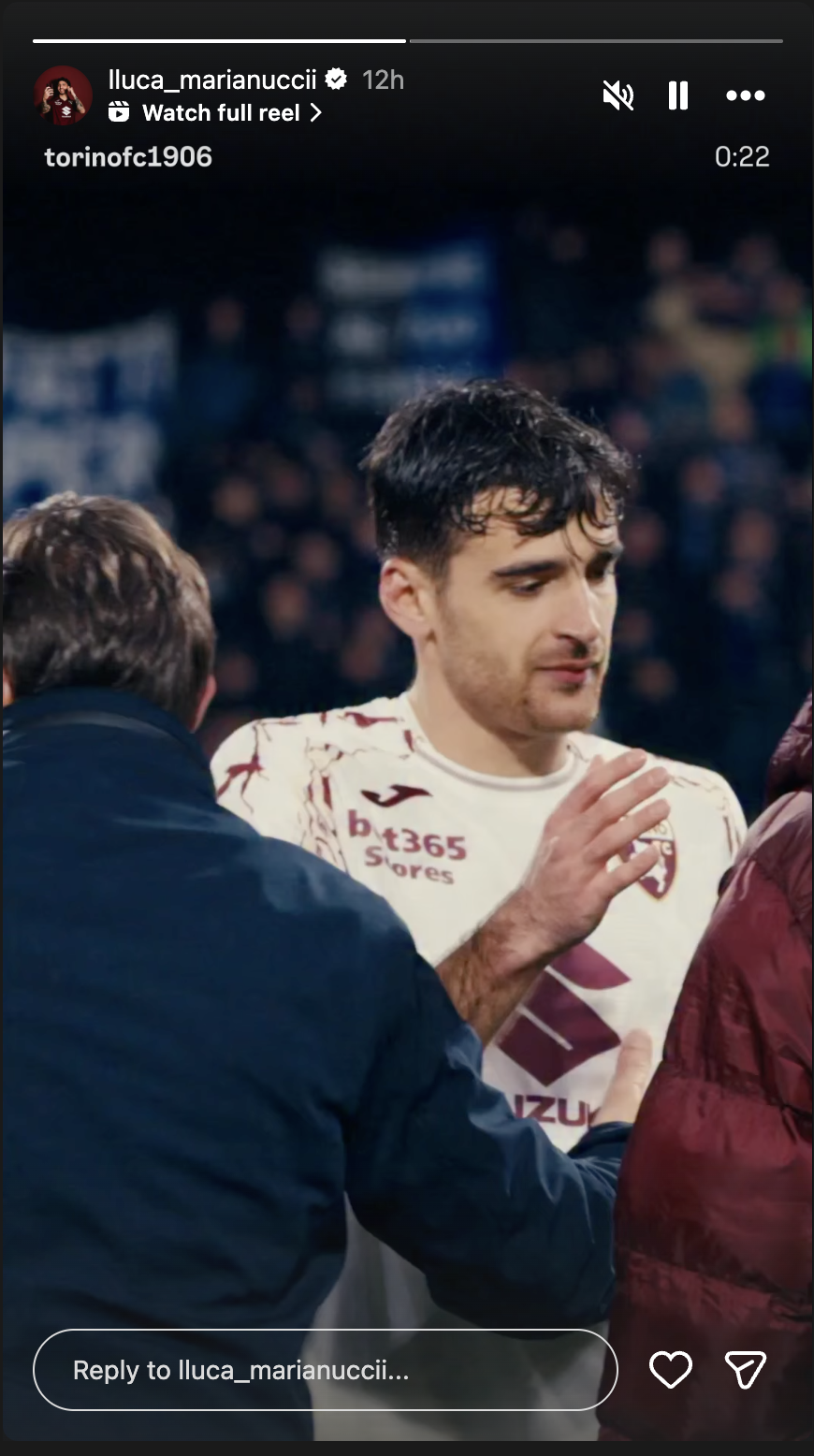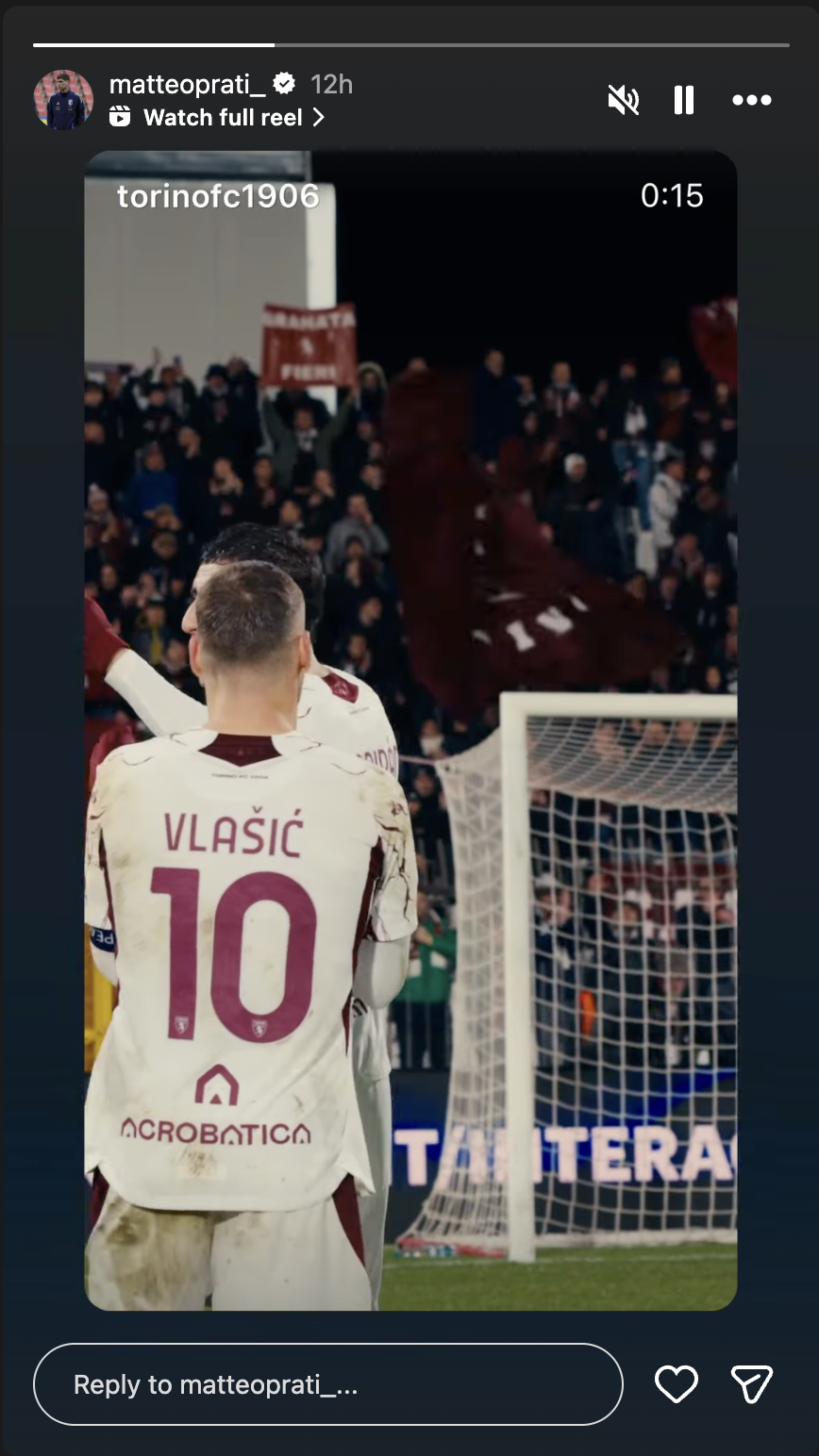 —Poteva essere il protagonista che non ti aspetti. Questione di centimetri per il giocatore ex Cagliari, approdato in granata nel corso dell'ultima finestra di mercato, la cui rete del 2-2 è stata annullata per una posizione millimetrica di offside. Nel post partita il centrocampista ha postato il video dei saluti dei giocatori sotto il settore riservato ai tifosi granata.