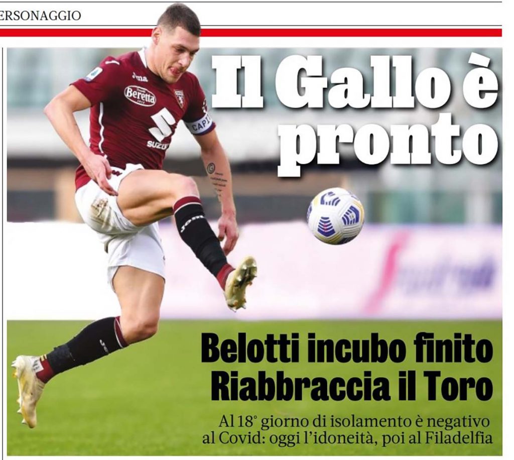 Programma personalizzato per Andrea Belotti che ritorna a lavorare dopo esser risultato negativo al Covid-19 e aver superato le visite mediche di idoneità. Il Torino continua a preparare il prossimo impegno di campionato in programma domenica alle ore 15:00 allo stadio Olimpico Grande Torino contro i nerazzurri allenati da Antonio Conte e la notizia più importante è sicuramente il rientro in squadra del capitano granata. Oggi anche Wilfried Singo si è messo il virus alle spalle e potrebbe unirsi alla squadra per la rifinitura di domani.