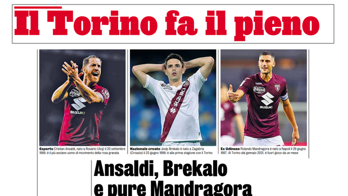 Torino, le ultime dal Filadelfia: ancora personalizzato per Ansaldi e Mandragora