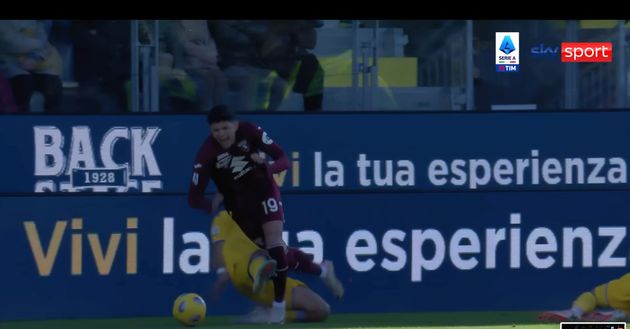 Nella quindicesima giornata di campionato, il Torino pareggia per 0-0 contro il Frosinone allo stadio Stirpe, ma una mancata seconda ammonizione in avvio di gara condiziona la sfida. L'arbitro dell'incontro è Luca Massimi della sezione di Termoli, che al 9' punisce con un cartellino giallo l'intervento falloso di Anhony Oyono su Samuele Ricci. La decisione in questo caso è corretta, in quanto il giocatore ciociaro entra in ritardo in scivolata interrompendo irregolarmente l'avanzata del granata a campo aperto sulla fascia destra. 90 secondi dopo, però, lo stesso Oyono stende Bellanova colpendolo con veemenza sopra al ginocchio: Massimi segnala il fallo ma, tra le proteste dei granata, non estrae il secondo giallo. L'errore è evidente: l'entrata è dura e pericolosa, la seconda ammonizione era netta.