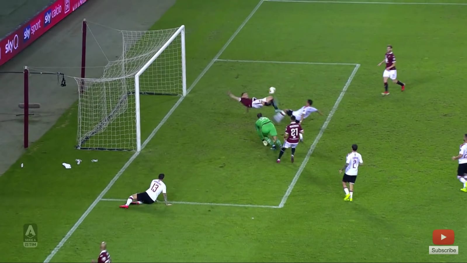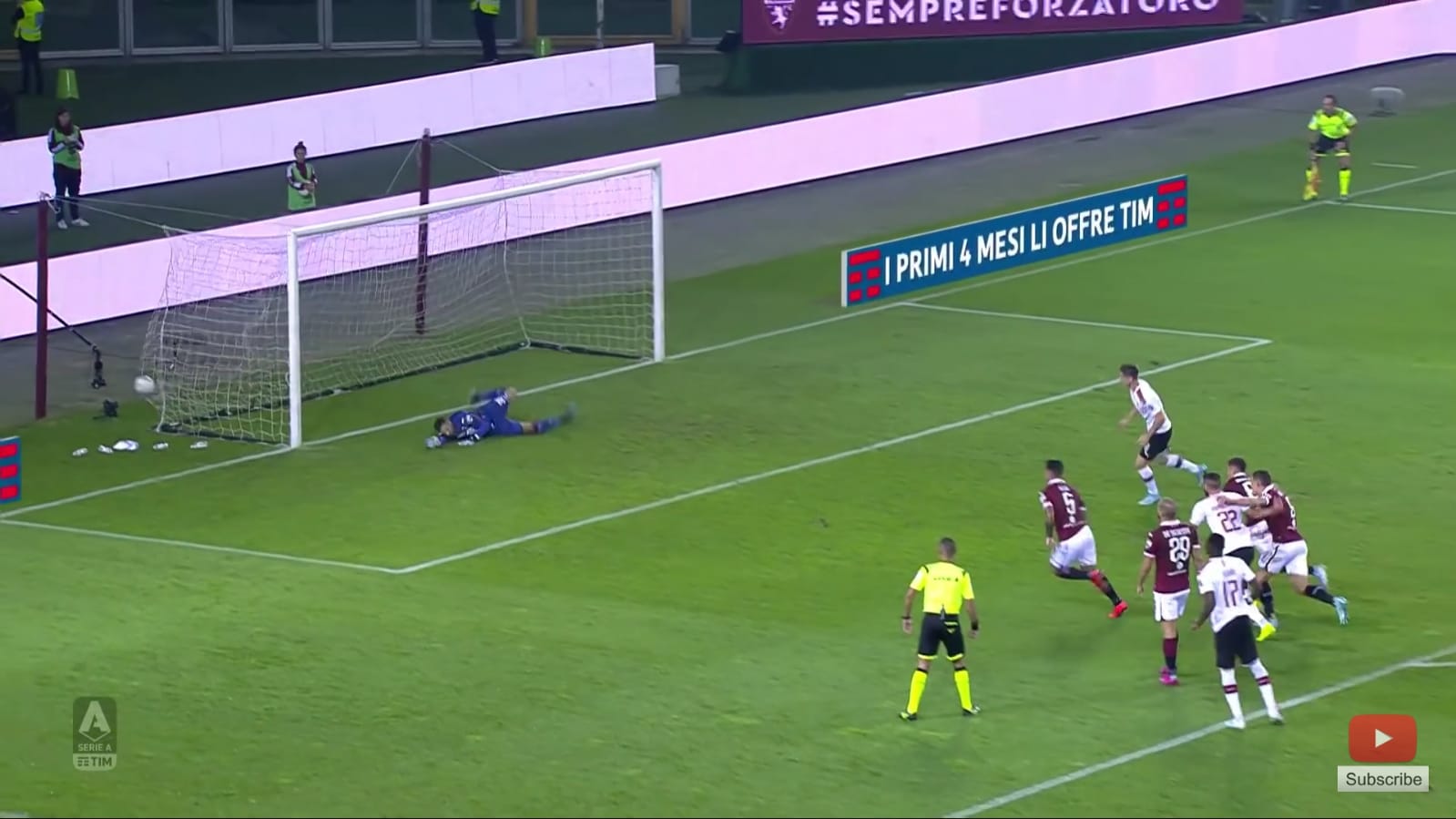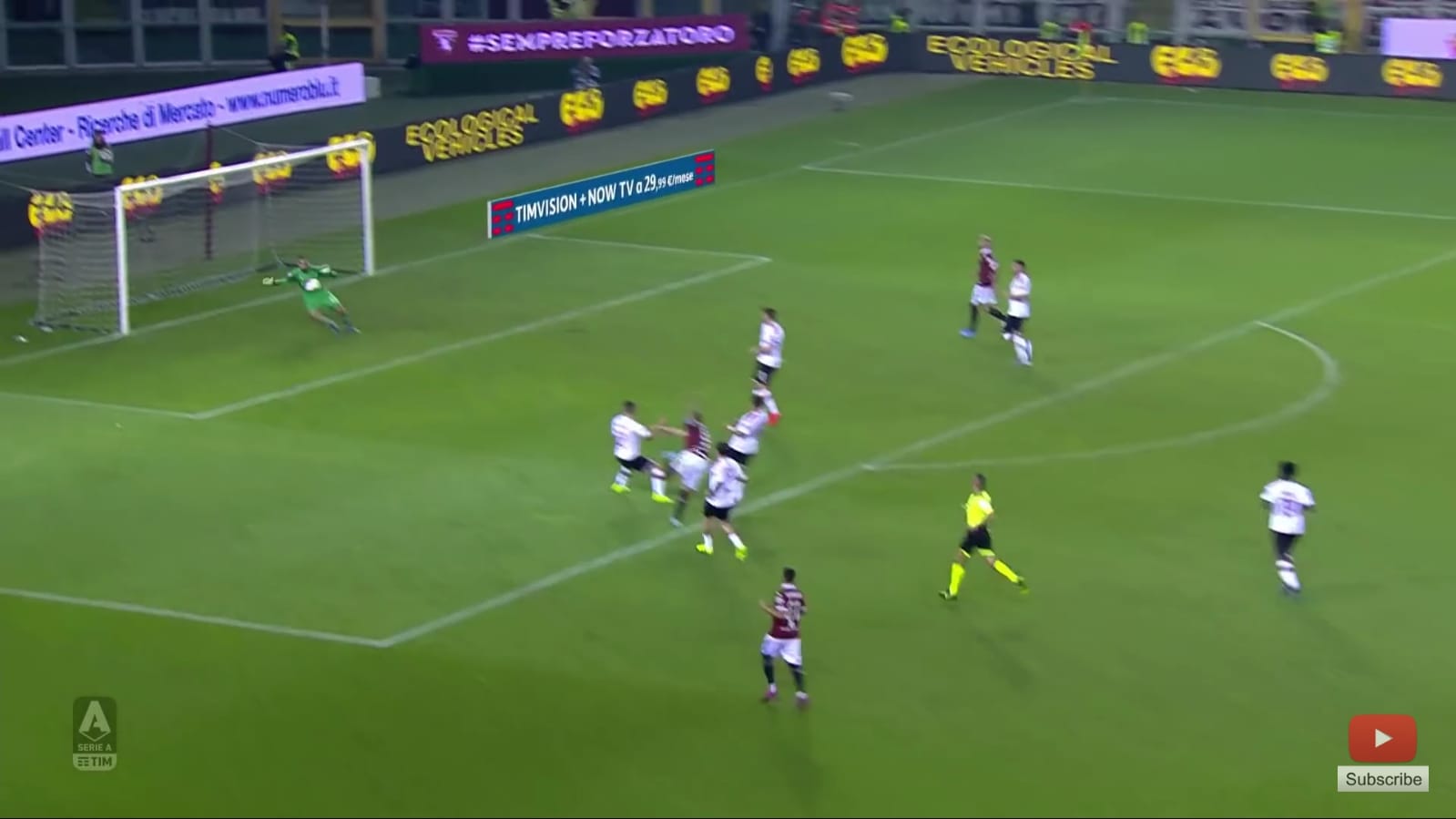 Nell'accentrarsi individua in una frazione di secondo lo specchio della porta e, prima di essere chiuso dai difensori, calcia con potenza. Belotti non sbaglia: sbaglia Donnarumma, che non pare esente da colpe. Comunque, conclusione precisa e potente, il pallone si insacca portando i granata al pareggio al 72'.