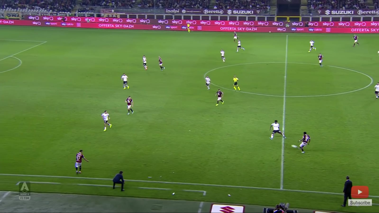 Belotti potrebbe tentare la conclusione personale ma vede arrivare Zaza alle sue spalle e quindi decide di servire il compagno. Il numero 11 si sovrappone a Belotti con un taglio in profondità e calcia verso la porta rossonera. Donnarumma respinge ma la palla resta in area. Bene in questa occasione l'intesa tra i due attaccanti.