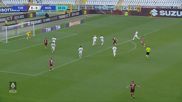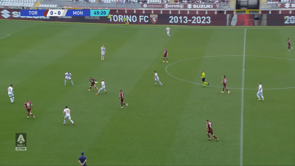 Dopo un primo tempo chiuso sullo 0-0 il Toro trova il vantaggio subito alla prima azione della ripresa. Sanabria gonfia infatti la rete 27 secondi dopo il fischio d'inizio del secondo tempo. Come si nota nell'immagine 1, l'azione nasce da un contrasto sulla trequarti offensiva del Toro con lo stesso numero 9 granata che va a contrasto con Rovella dopo un passaggio di Ilic.