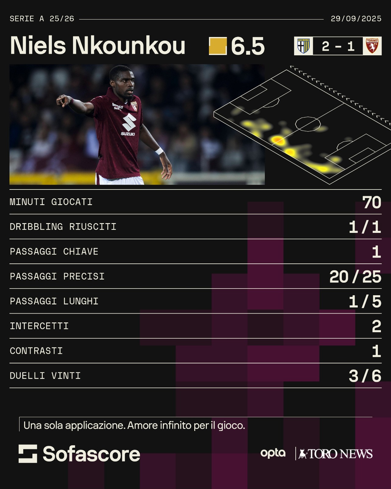 Niels Nkounkou è stata la sorpresa positiva del Torino nelle ultime uscite, quelle con Pisa e Parma. Contro i toscani ha messo in evidenza voglia, con i ducali gioca una gara ordinata, dando costantemente la sensazione di poter controllare senza grossi patemi d'animo Britschgi. Schierato al posto di un Biraghi in evidente difficoltà fisica e anche tecnica, non ci sarà da stupirsi di fronte ad altre titolarità. Forse sarebbe dovuto arrivare prima.