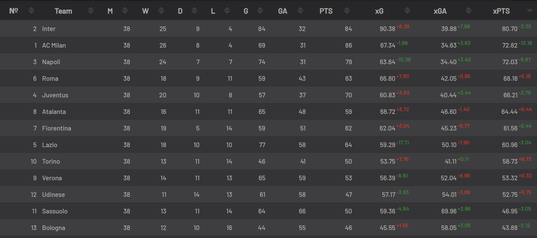 GOL - Andando nello specifico di queste statistiche, ci sono anche gli expected goals che sono interessanti da analizzare. Il Toro ha concluso a stagione con 46 gol fatti, ma secondo lo studio la squadra di Juric avrebbe dovuto segnarne ben 53, 7 in più rispetto alla realtà. Per quanto riguarda invece i gol subiti, il Torino è in linea con gli expected goals passivi, quindi nel bilancio conclusivo il Toro è penalizzato soltanto nei gol fatti. Andrà quindi analizzato questo dato e dovrà essere implementata la fase offensiva, che non è riuscita a concretizzare la buona mole di gioco prodotto.