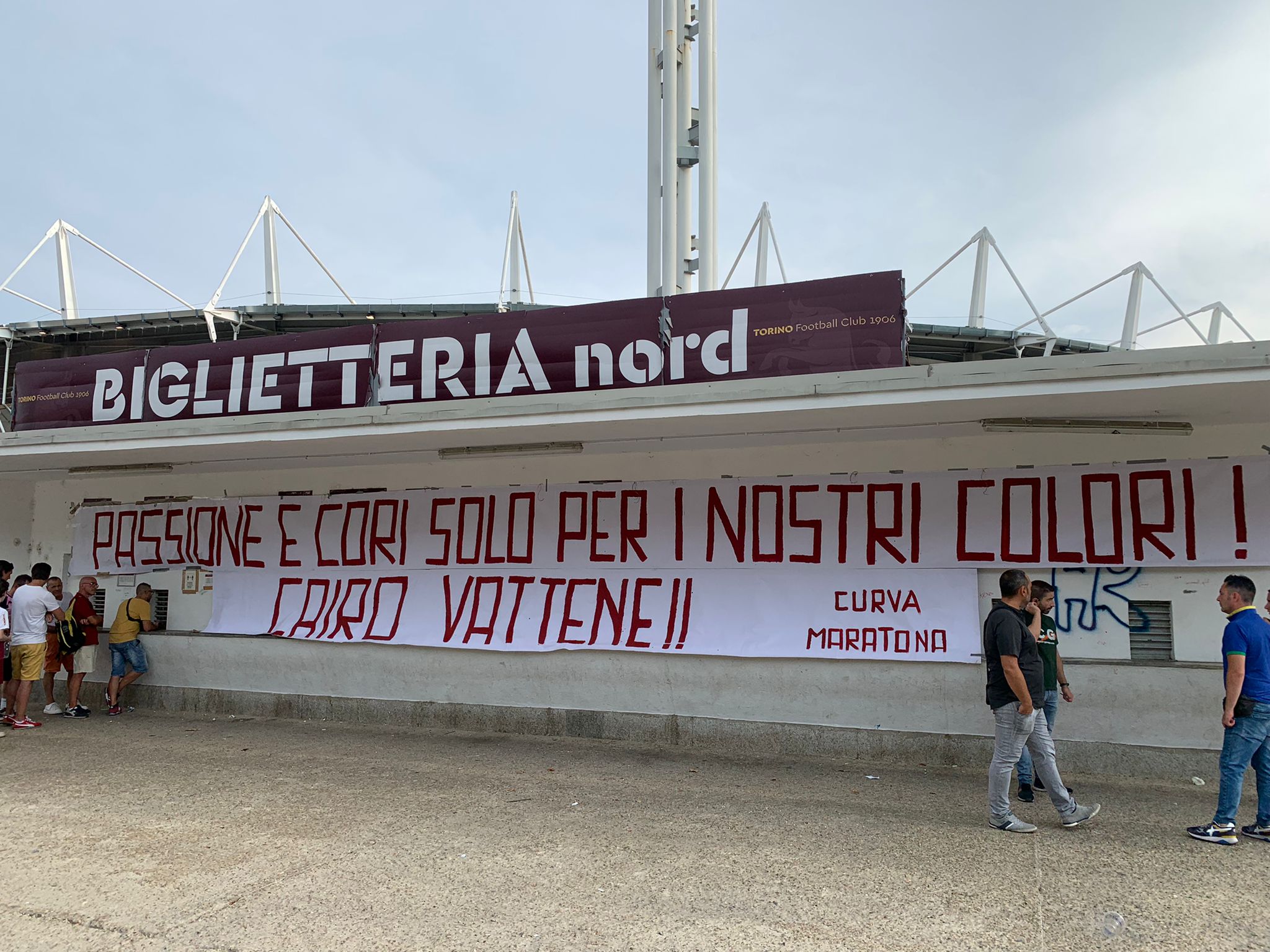 C'è anche aria di contestazione e alcuni tifosi hanno esposto uno striscione a firma Curva Maratona contro la dirigenza granata.