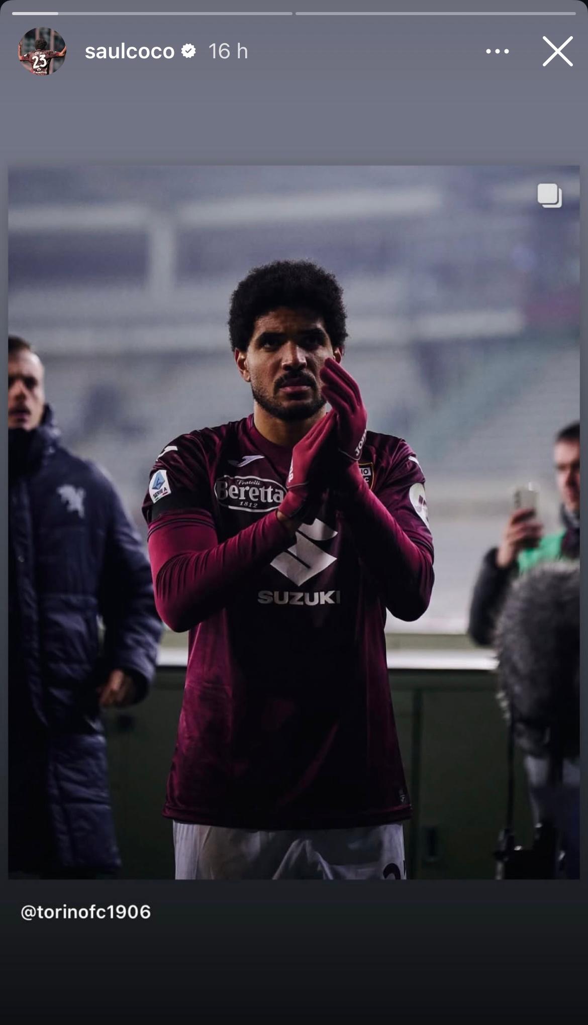 Il difensore granata Saul Coco ha pubblicato sul suo profilo Instagram una storia che lo ritrae sotto la curva Maratona dopo il fischio finale. A seguire la foto sul profilo Instagram.