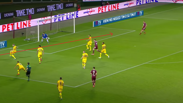 A porta sguarnita è facilissimo per l'esterno kosovaro appoggiare il pallone in fondo alla rete col piattone destro, permettendo al Torino di ottenere tre punti importantissimi.