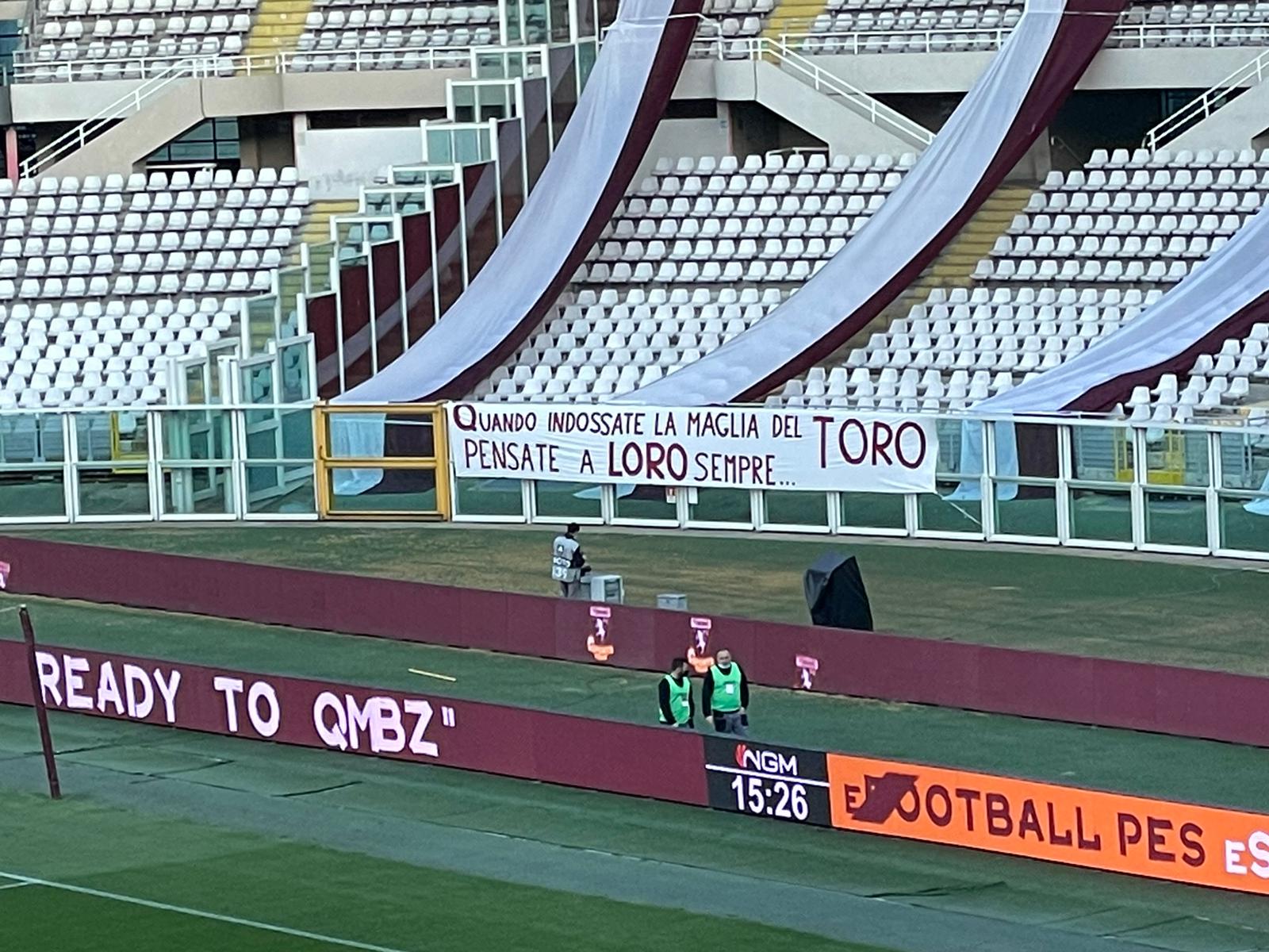 19.25 - Sotto la curva Primavera è stato esposto un altro striscione che recita: "Quando indossate la maglia del Toro, pensate a loro sempre". Il riferimento è ovviamente ai giocatori del Grande Torino.