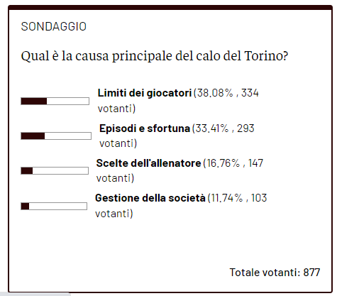 Il risultato del sondaggio settimanale: per i votanti, i limiti dei giocatori sono la causa del calo del Torino
