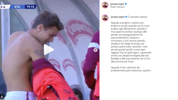 Quella di ieri è stata la partita d'esordio in Serie A per Jacopo Segre. Il centrocampista granata all'80' ha preso il posto di Rincon, uscito per un infortunio muscolare. Segre sul suo profilo Insagram ha scritto una lettera a cuore aperto, postando anche il video del momento in cui è entrato in campo: