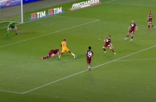 L'1-0 della Roma porta la firma di Tammy Abraham, ma nasce da un errore del Torino. Tutto inizia sulla trequarti difensiva granata, dove Brekalo non sa a chi dare la sfera e opta per un passaggio orizzontale molto rischioso.