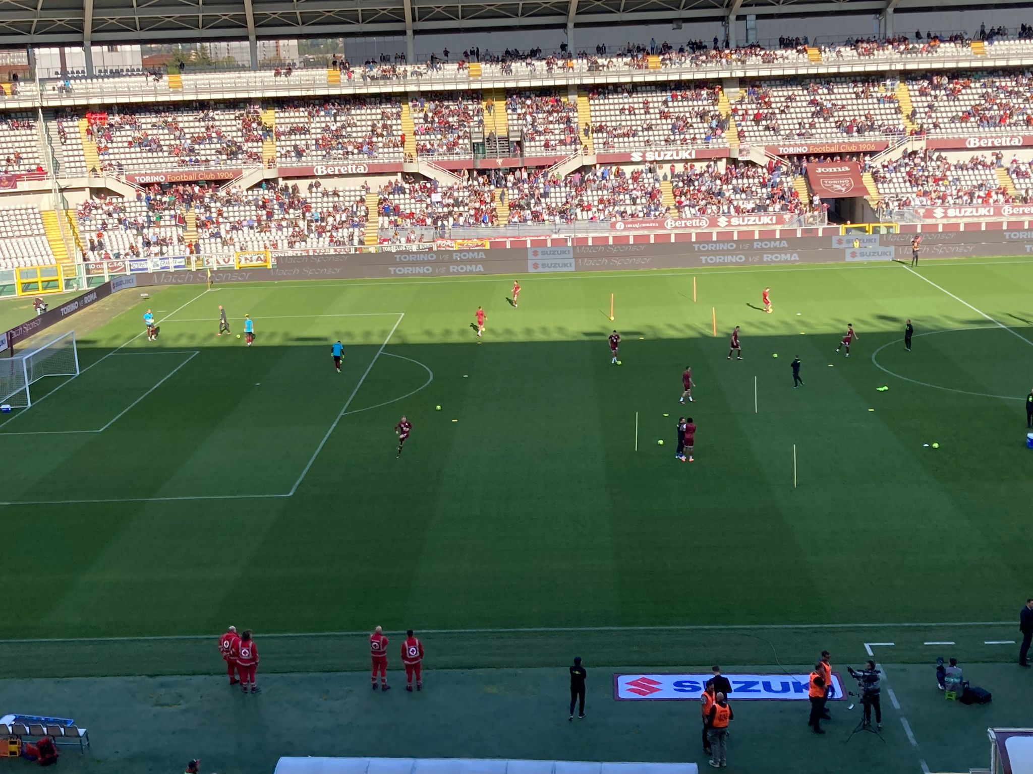 17.54 - Inizia il riscaldamento. Scendono in campo i portieri granata (Milinkovic-Savic, Gemello e Fiorenza). In campo subito anche la Roma