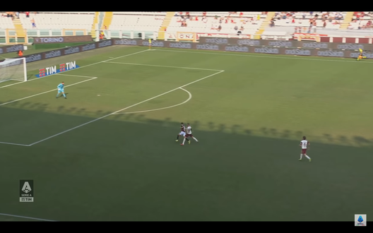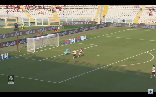 A quel punto il centrocampista serbo è tutto solo davanti al portiere Belec che non può far nulla e viene battuto da Lukic (Immagine 4) che si mantiene lucido, fa una finta e poi insacca il pallone alla sinistra dell'estremo difensore della Salernitana realizzando così la rete del definitivo 4-0 per il Toro.