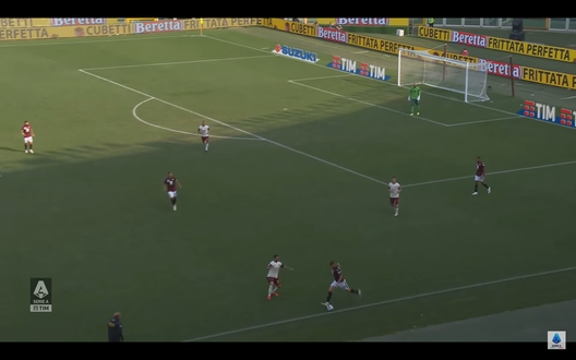 In occasione del quarto ed ultimo gol del Torino è il giovane Alessandro Buongiorno a dare origine all'azione con un lancio lungo che parte dalle retrovie (Immagine 1).