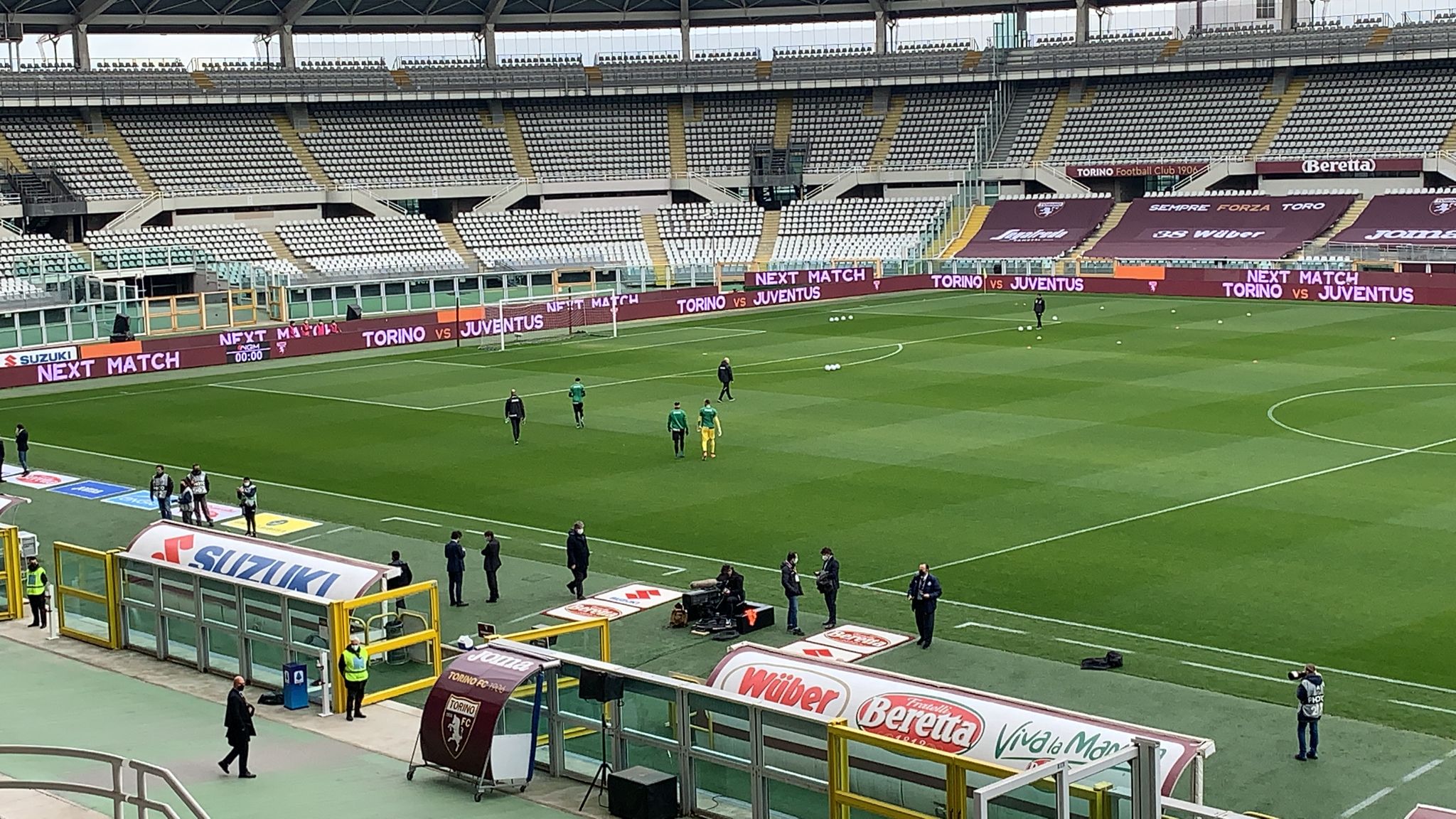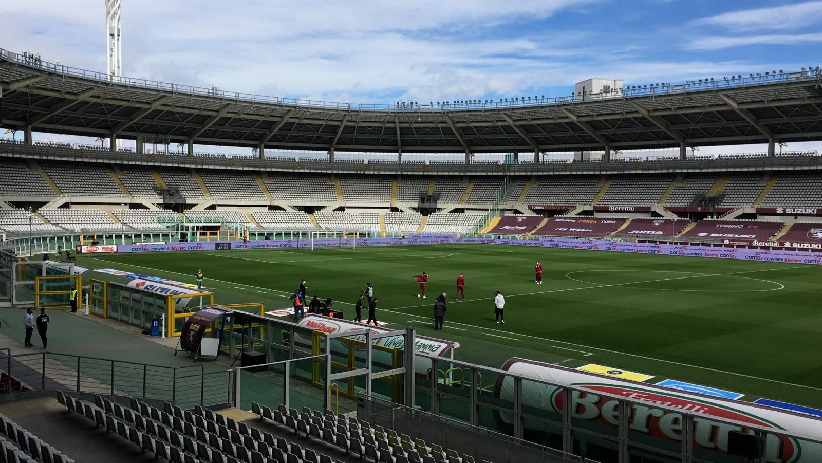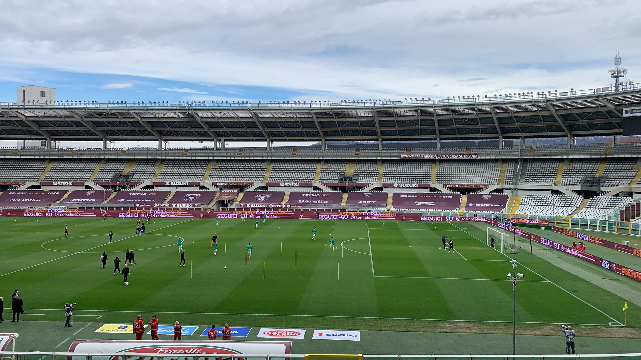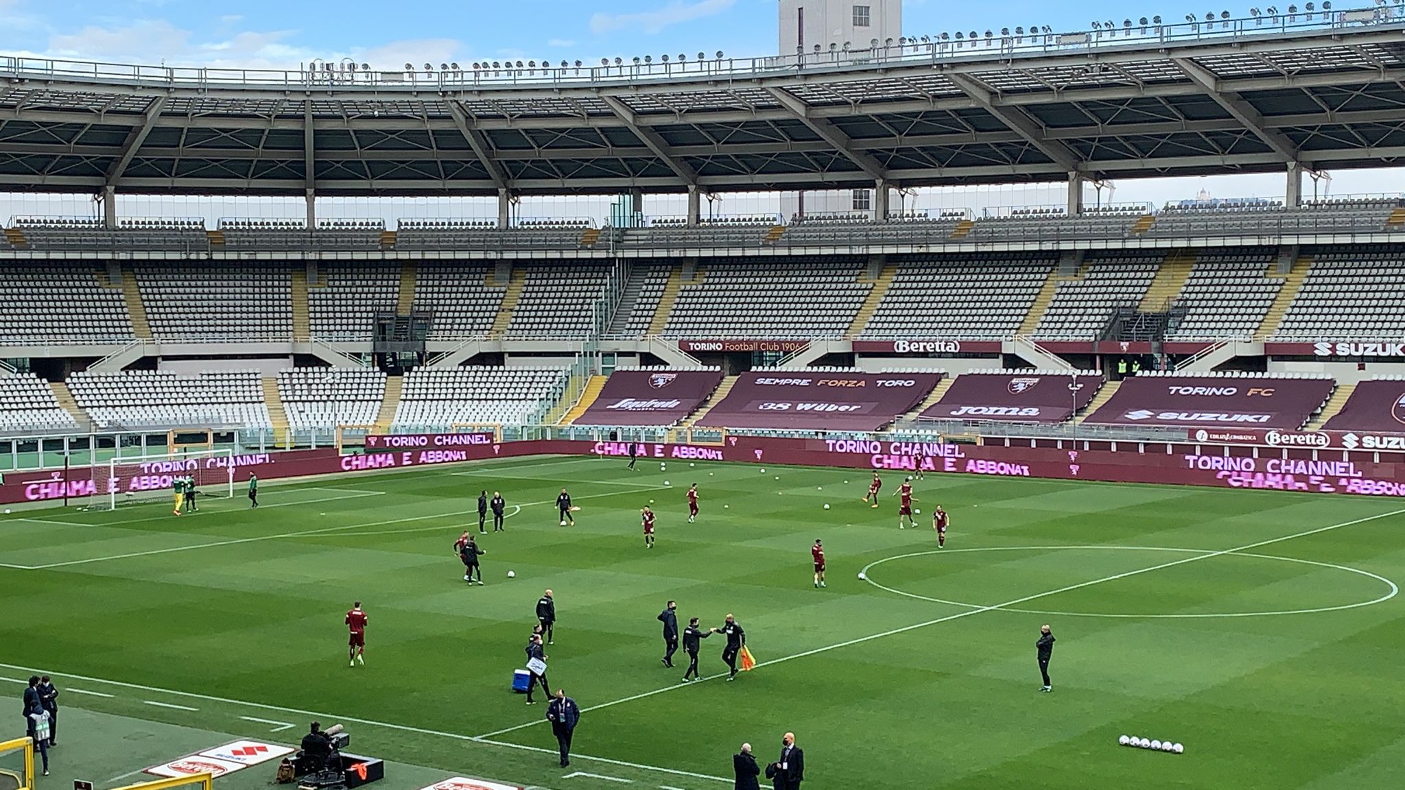 13.45 - Giro di campo per i calciatori del Toro dopo che sono arrivati allo stadio, a breve inizierà il riscaldamento