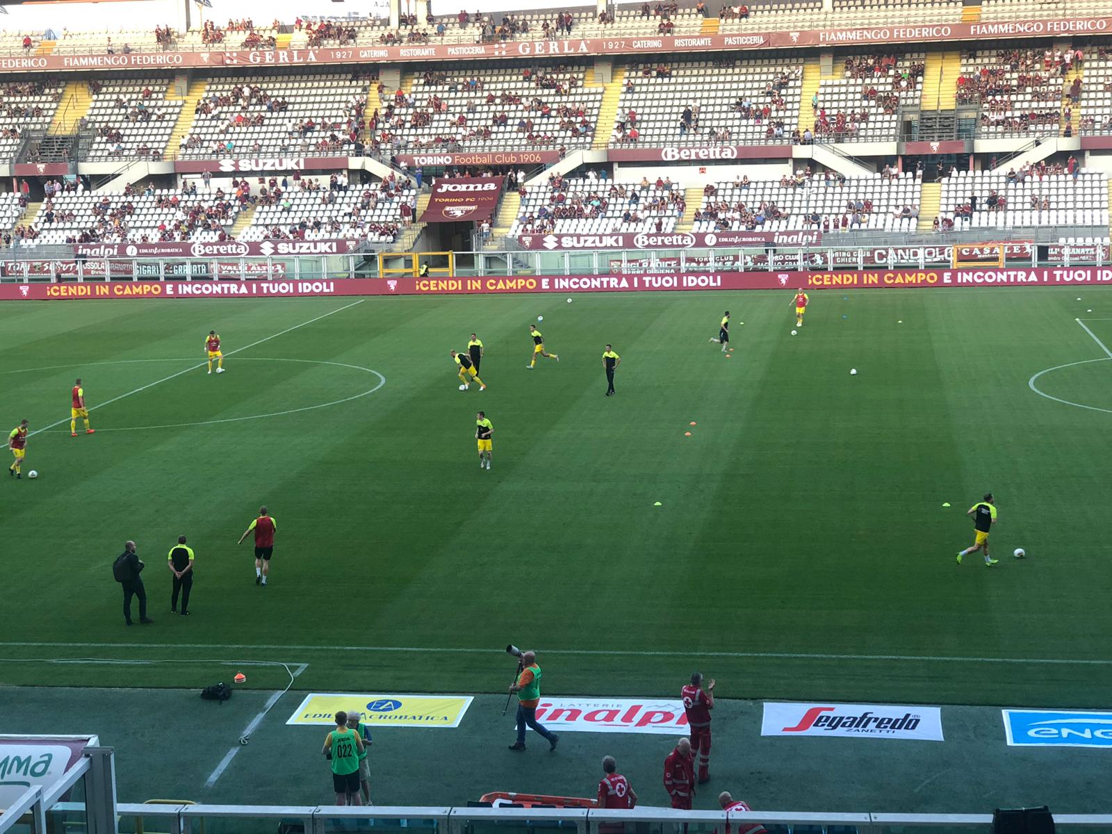 20.25 Anche il Toro sta effettuando gli esercizi pre-partita