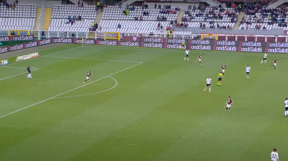 Nel finale lo Spezia accorcia le distanze con Manaj su calcio di rigore. Provedel rinvia lungo, con la difesa del Torino ancora altissima.
