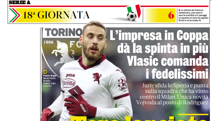 Nei minuti finali del primo tempo di Torino-Spezia, Sasa Lukic ha alzato bandiera bianca per un problema muscolare al flessore della coscia destra. Il centrocampista serbo ha stretto i denti per gli ultimissimi istanti della prima frazione ma al rientro dall'intervallo ha lasciato il posto a Linetty. Le condizioni del numero dieci saranno dunque da valutare approfonditamente.
