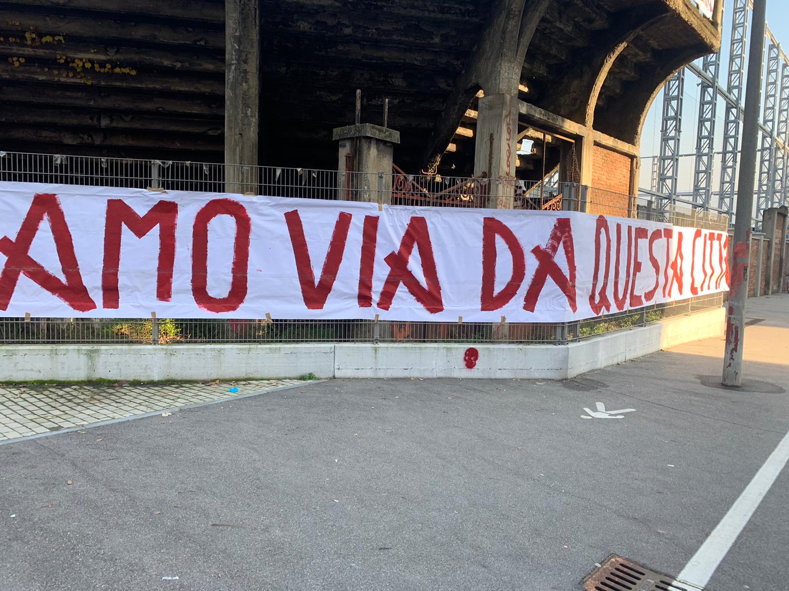 "Società d'infami, Allenatore senza dignità... Vi vogliamo via da questa Città", il testo dello striscione.