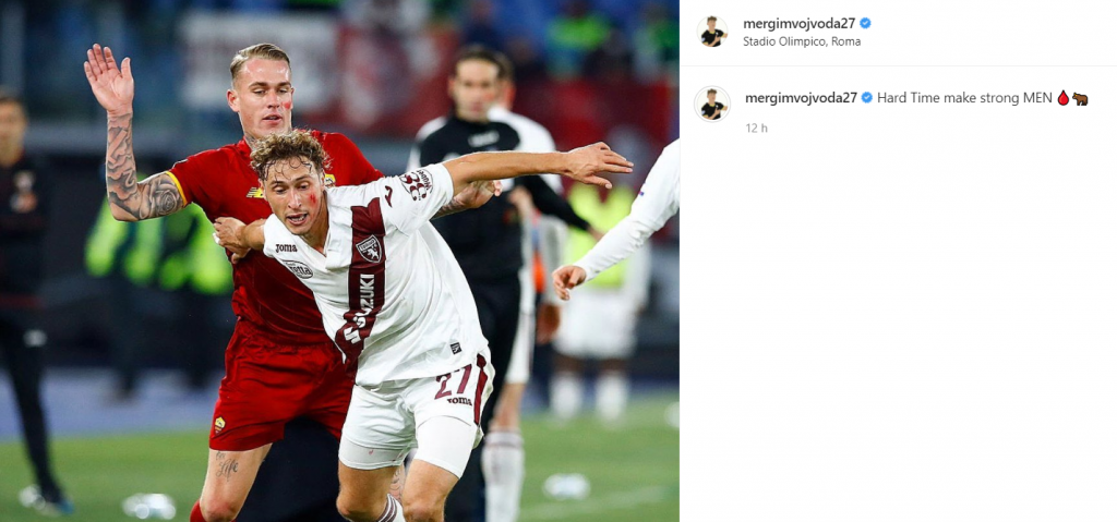 A rompere il silenzio social dei giocatori del Torino dopo la sconfitta di ieri - domenica 28 novembre - allo stadio Olimpico di Roma con i giallorossi allenati da Josè Mourinho è Mergim Vojvoda. L'esterno granata - schierato ieri da Juric per la seconda partita consecutiva dal primo minuto - ha postato sul suo profilo Instagram una foto in cui lotta con Rick Karsdorp sulla fascia con un messaggio importante: "I momenti duri rendono gli uomini forti". Dopo la vittoria casalinga con l'Udinese, i granata sono di nuovo caduti in trasferta: ora la squadra di Juric dovrà riscattarsi nel prossimo match con l'Empoli in programma giovedì sera.