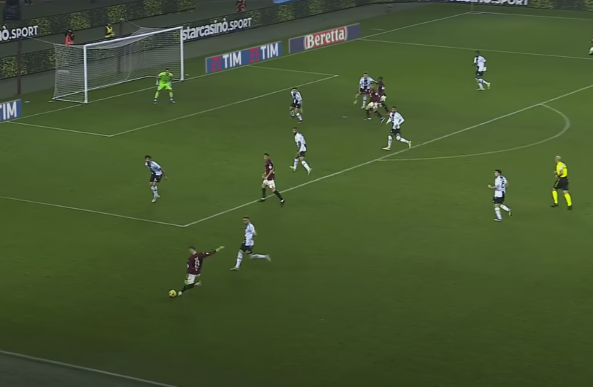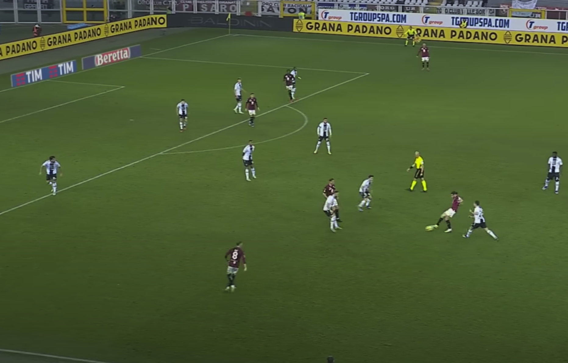 Nel finale la fortuna aiuta il Toro. Vojvoda è bravo a proteggere palla sulla pressione avversaria e a scaricare per Rodriguez, che di prima allarga su Ilic.