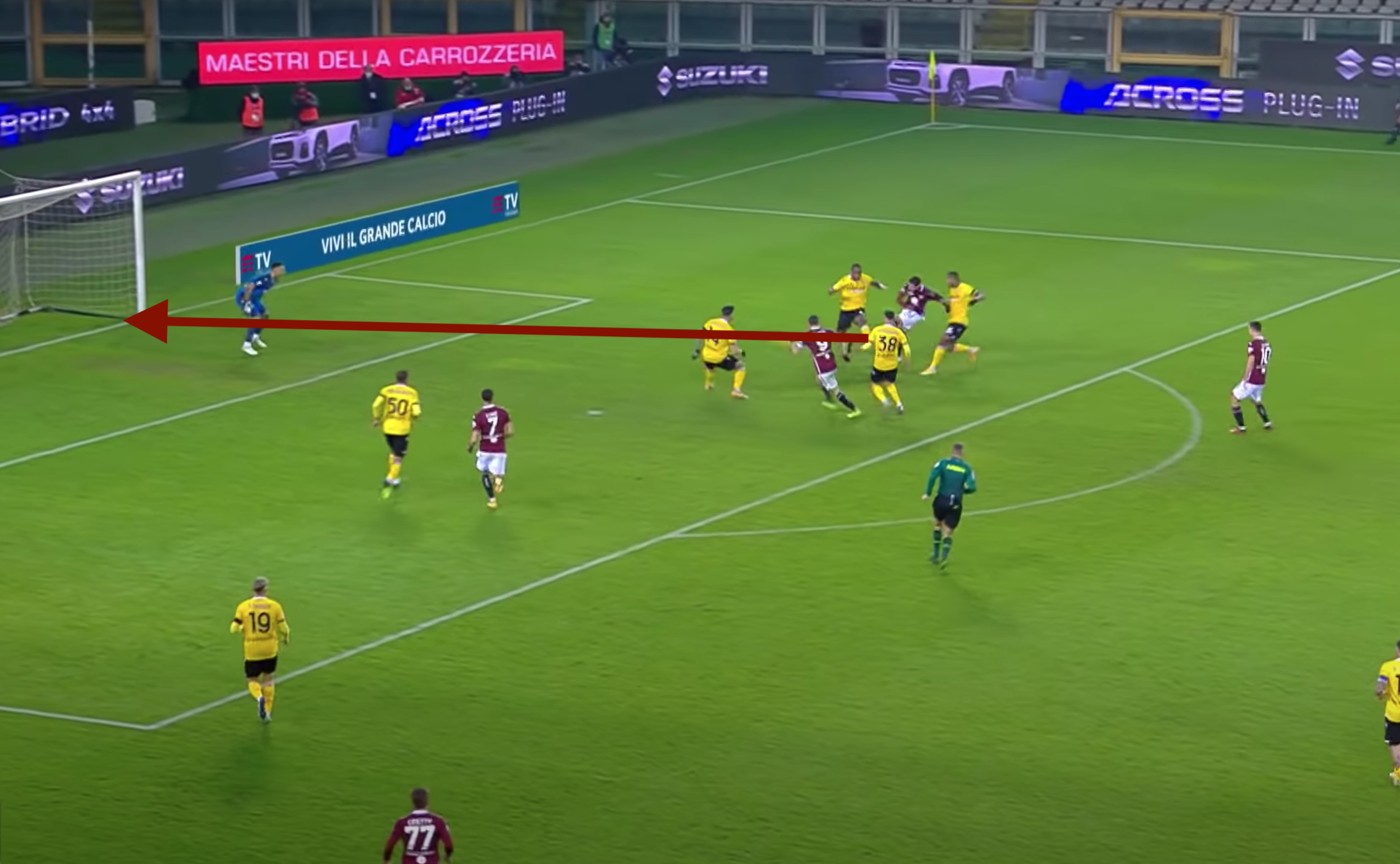 Passa un minuto e il Torino trova il pari. Becao rinvia frettolosamente e sulla palla si avventa Rodriguez.