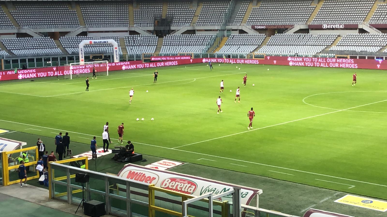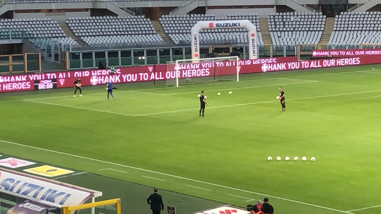 20.33 Il Torino è sul campo dell'Olimpico per fare il consueto sopralluogo pre partita.