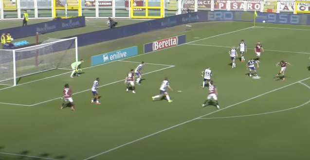 Poi l'ex Napoli si porta avanti la palla con un tocco e con il mancino manda in rete. Gol frutto di una bellessima combinazione tra i due giocatori di maggior talento della squadra. L'unica combinazione della partita.