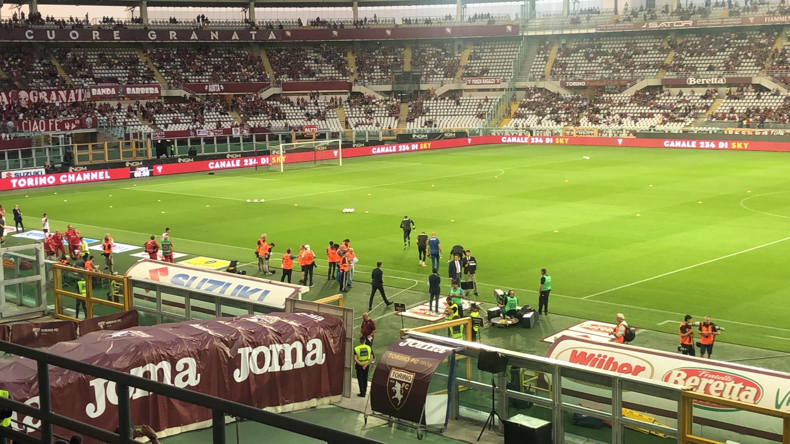 19.39 - Squadre in campo: è in corso il sopralluogo sul prato del Grande Torino
