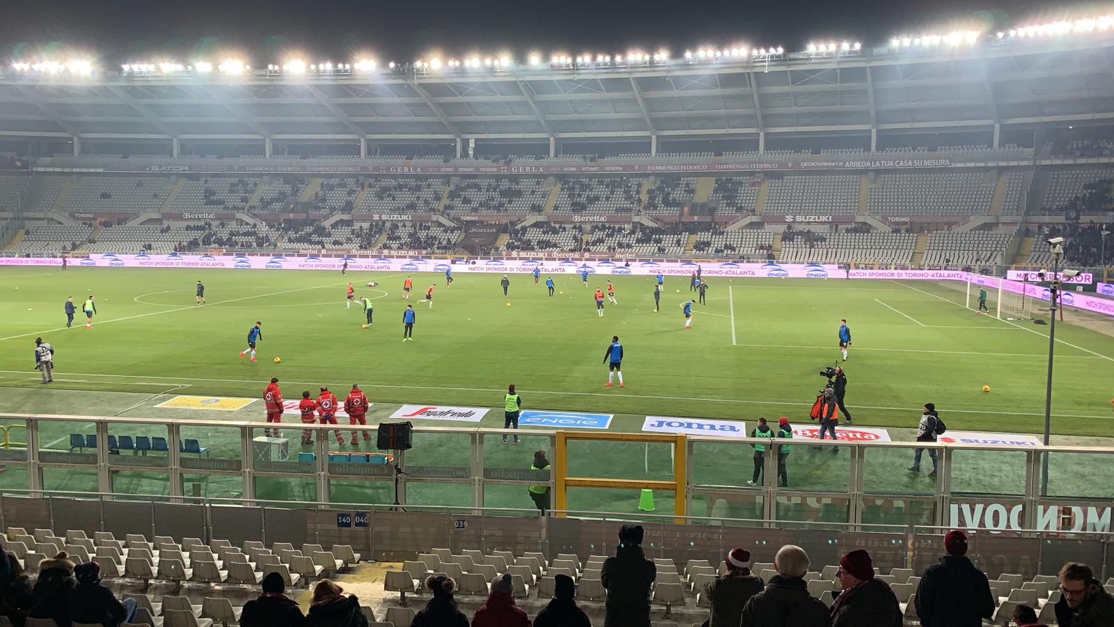 20.18 Il via del riscaldamento di Torino e Atalanta. Ora non si scherza più.