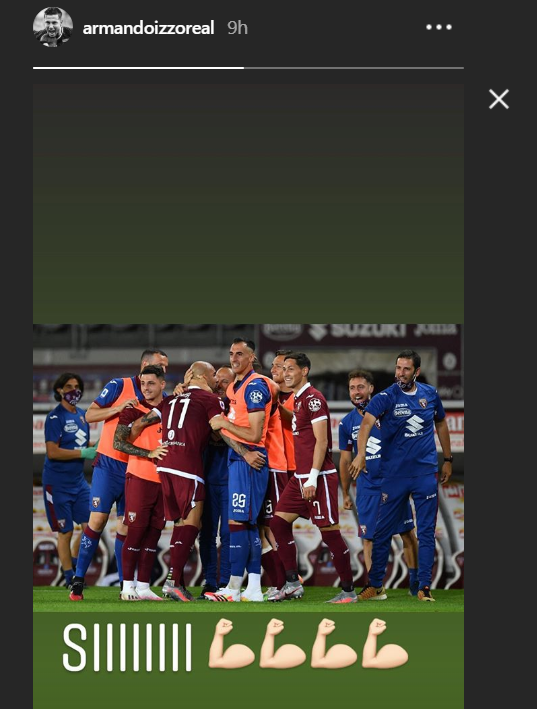 Non ha preso parte alla sfida contro il Brescia perché squalificato ma Armando Izzo ha voluto allo stesso festeggiare insieme ai suoi compagni sui social. Una storia con scritto semplicemente "SIIIII" e con un po' di muscoli per indicare la forza di un gruppo che ha saputo reagire nel momento più nero.
